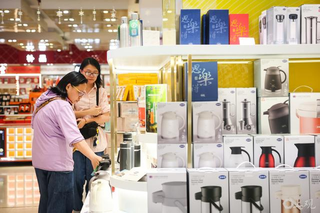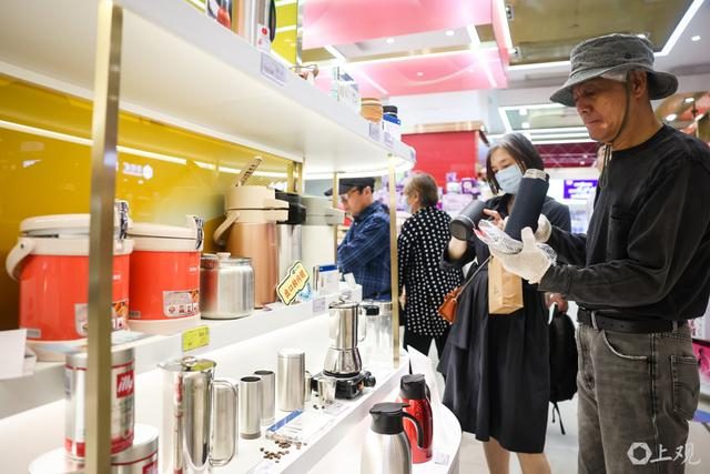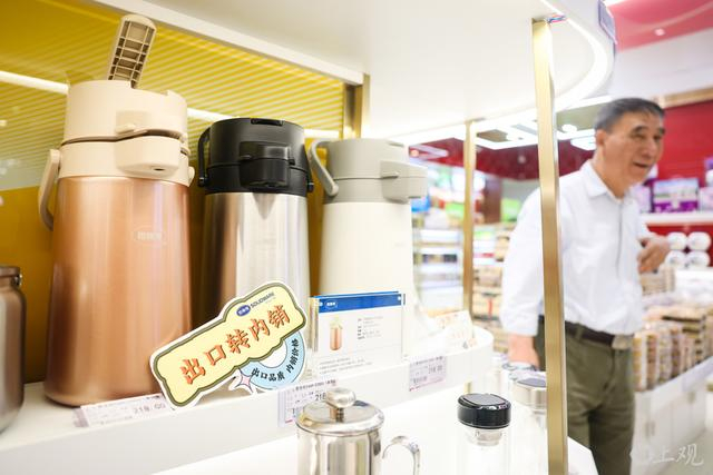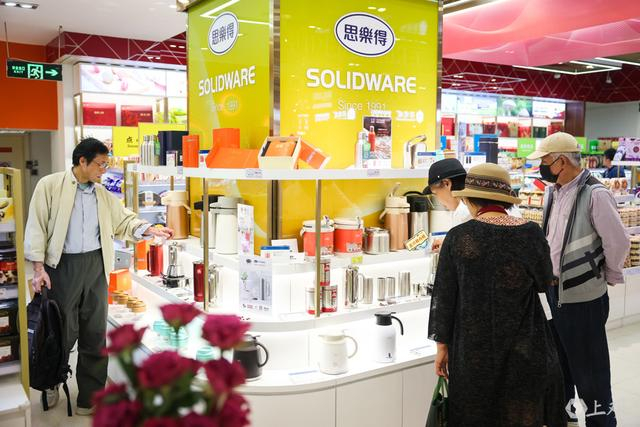 店内新设的“思乐得”专柜上,近30种外贸商品琳琅满目,包括获得德国红点奖的保温杯、专为国内消费者定制的法压壶等。