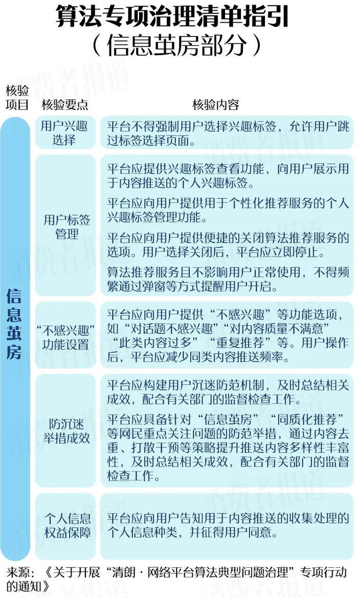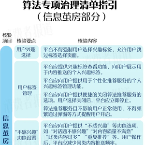 为进一步深化互联网信息服务算法综合治理,中央网信办、工信部、公安部、国家市场监管总局等四部门于2024年11月联合发布了《关于开展“清朗·网络平台算法典型问题治理”专项行动的通知》,明确了信息茧房、热搜榜单、新就业形态劳动者权益、大数据“杀熟”、算法向上向善、落实算法安全主体责任等六大整治任务,督促企业深入对照自查自改,进一步提升算法安全能力。通知同时明确了算法导向正确、算法公平公正、算法公开透明、算法自主可控、算法责任落实等工作目标。