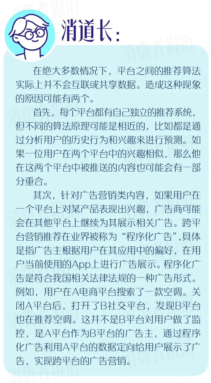 针对算法与个人隐私的冲突问题,《消费者报道》选取了三个与消费者日常生活密切相关的典型场景进行深度剖析,从技术原理、法律法规及消费者权益保护等维度展开全面解读。