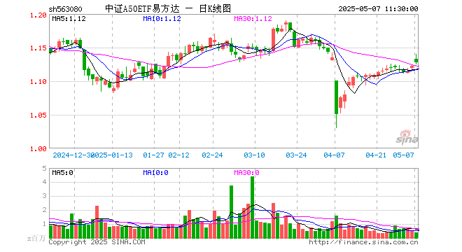 中证A50ETF易方达(563080)涨0.53%,半日成交额3992.34万元