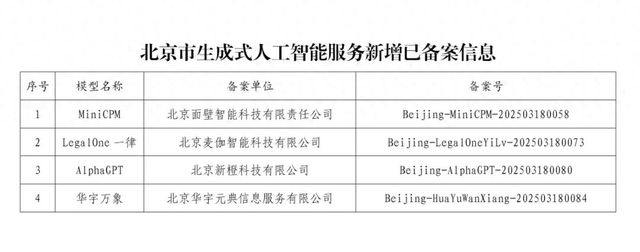 新京报贝壳财经讯 5月7日,“网信北京”发布的信息显示,根据《生成式人工智能服务管理暂行办法》,截至2025年5月7日,北京市新增4款已完成备案的生成式人工智能服务,累计已完成132款生成式人工智能服务备案。已上线的生成式人工智能应用或功能,应在显著位置或产品详情页面,公示所使用已备案的生成式人工智能服务情况,注明模型名称、备案编号。