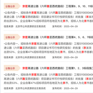 近日,多项京密高速公路的施工招标公告发布。 北京市公共资源交易服务平台官网截图