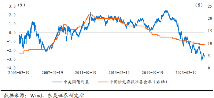 尽管相比2009年-2010年期间执行的15.50%-16.0%准备金率水平已经下降不少,但2025年仍有“降准”空间。从稳定经济增长的需求来看,2001年以来每年新增人民币贷款与名义GDP增量均保持一个稳定的比例关系,2001年至2024年三季度末,每年新增人民币贷款与名义GDP比例平均值为17%,期间有2009年一季度达到62%的单季度峰值,但综合来看,每年的新增贷款能够满足经济增长对基础货币的需要。