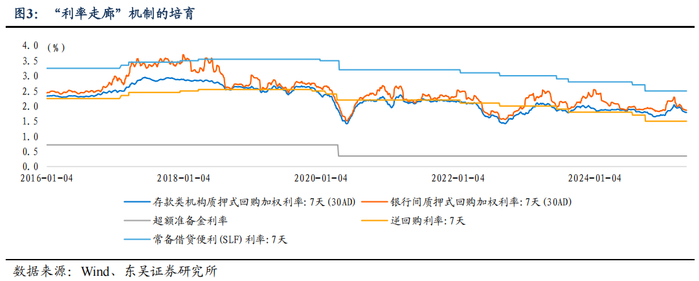 过去10年“利率走廊”实践,提示货币政策应选择一种政策工具利率作为主要的政策利率,并以此为操作目标,将操作目标、政策利率和货币政策工具利率合而为一,更加有利于货币政策传导。基于2015年至2024年的多年尝试,最终2024年6月份之后,人民银行选取7天期逆回购利率作为主要政策利率体系,以此影响市场利率,而贷款市场报价利率(LPR)则从MLF利率加点变革为7天期逆回购利率加点,确认了主要政策利率工具。