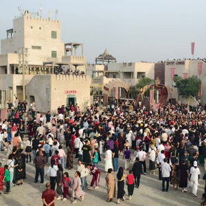 “五一”假期,和田约特干故城景区人流如织。 和田地区文化体育广播电视和旅游局供图