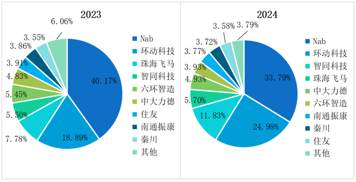 2023-2024年中国工业机器人RV减速器市场出货量份额变化(单位:%)