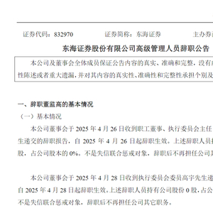 2025年4月29日,东海证券与东海基金同步发布高管变动公告,原东海证券执行委员会主任(总裁)杨明、执行委员会委员高宇相继辞职。其中,杨明同时卸任东海基金董事长职务。这一人事震荡引发市场关注,尤其结合东海基金2024年多只产品持续亏损、规模缩水的现状,投资者对其未来经营稳定性产生担忧。