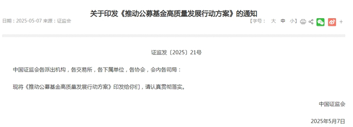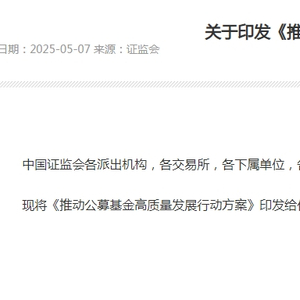 中国证监会印发《推动公募基金高质量发展行动方案》(附全文)