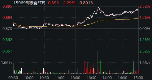 除军工外,午后走强的种植业、农化制品、农产品加工等多个板块同样引起市场关注。在场内ETF中,这主要体现为粮食ETF的异动。