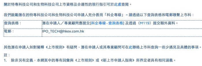 港交所方面还表示,有意透过“科企专线”与联交所沟通的潜在申请人可按照“科企专线”网页上的帮助联系上市科。