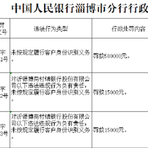 沂源博商村镇银行因未按规定履行客户身份识别义务被罚50万元