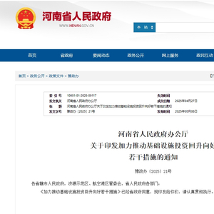 5月6日,河南省人民政府办公厅印发《加力推动基础设施投资回升向好若干措施的通知》(简称《通知》),旨在加快推进基础设施项目建设,推动全省基础设施投资回升向好,提出力争2025年上半年完成基础设施投资2460亿元以上,全年完成基础设施投资4920亿元以上,其中完成交通基础设施投资1200亿元,为河南交通事业发展注入强大动力。