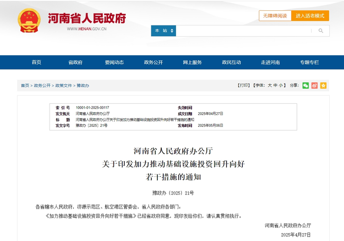 交通基础设施投资1200亿元 河南印发加力推动基础设施投资回升向好若干措施