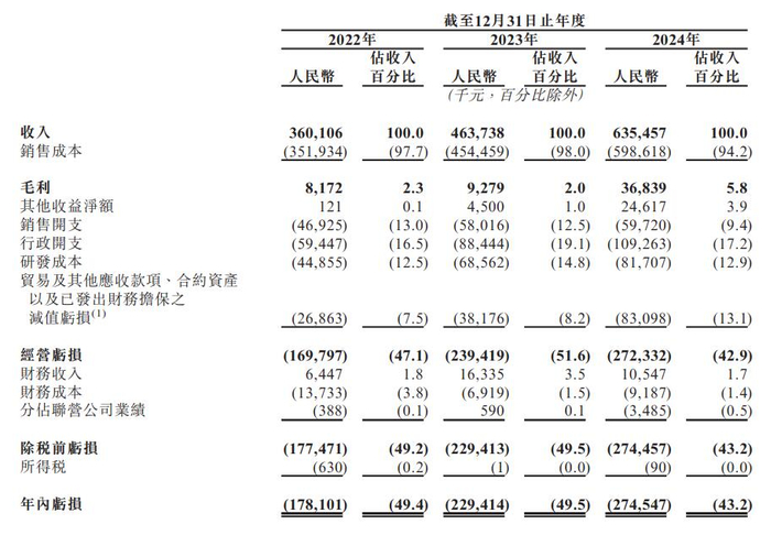 2022年、2023年、2024年,博雷顿的收入分别为3.60亿元、4.64亿元、6.35亿元;年内亏损分别为1.78亿元、2.29亿元、2.75亿元。
