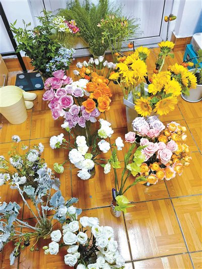 凭借精心搭配的花束,小马的花店帮许多客户传递节日祝福。即使过了生意最兴隆的特定节日,宿舍里依旧保持着花团锦簇的景象。