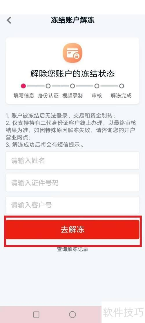 3、 阅读并同意条款,输入解冻信息,通过方正证券软件提交办理。