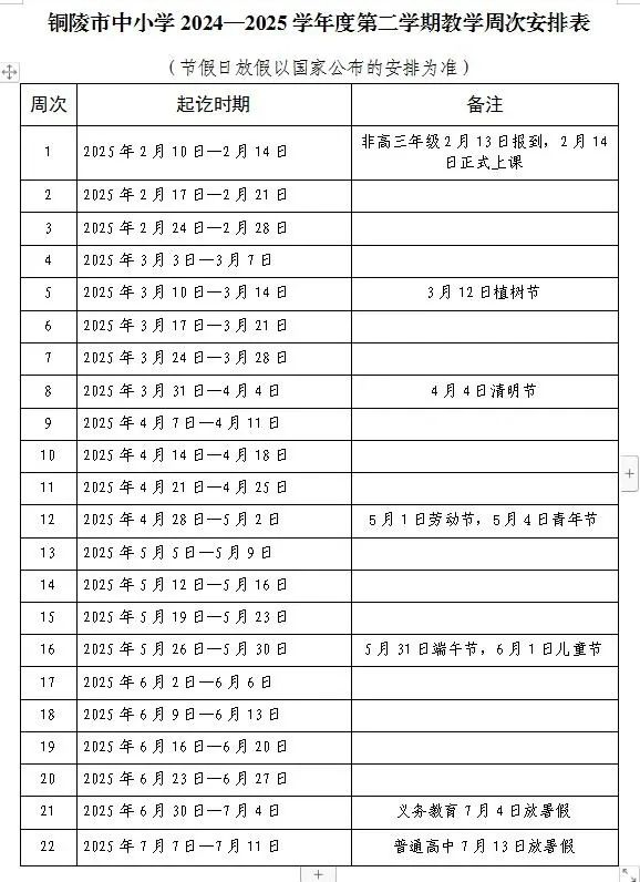 记者根据芜湖市教育局发布的《芜湖市中小学2024—2025学年第二学期教学周次安排表》以及芜湖各高校校历表,整理出芜湖市中小学暑假放假时间。