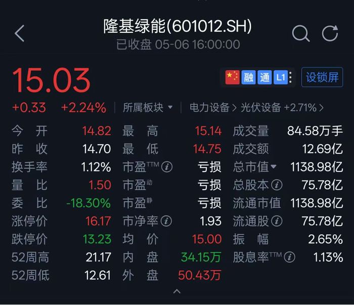 隆基绿能24年亏损86亿