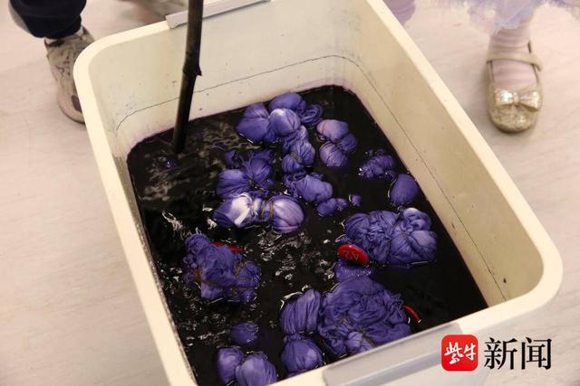 实践环节,孩子们化身为小小艺术家,以扇形折布、扎结作花,指尖轻舞间,创意无限。一条条素白方巾在孩子们的巧手下,经橡皮筋束缚、靛蓝染液浸润,渐次绽放出青花瓷般的雅致纹路,每一幅作品都是独一无二的艺术佳作。