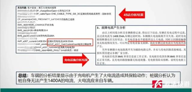 公司相关负责人:我们能拿出东西来证明充电桩没有问题,工程师给我发出的解释是充电订单结束的原因是达到SOC值,是BMS主动发送的停止,终端也正常停止,订单正常。第二点是充电桩单枪的最大输出电流限制为250A,断路器的规格为315A,截止目前为止,充电桩订单正常。第三点是从平台端监控的电压电流功率曲线图来看,输出都在BMS需求范围内正常输出。其实说得直白一点,就是充电桩影响不到车辆它自己放电。