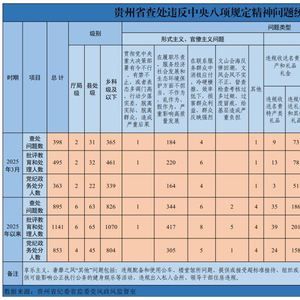 2025年3月贵州省查处违反中央八项规定精神问题398起