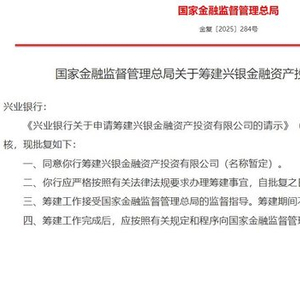 5月7日晚间,兴业银行(601166.SH)公告,收到《国家金融监督管理总局关于筹建兴银金融资产投资有限公司的批复》(金复〔2025〕284 号)。