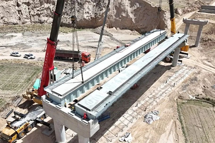 G312线苦水至界牌村段新改建项目马场沟大桥钢箱梁成功架设