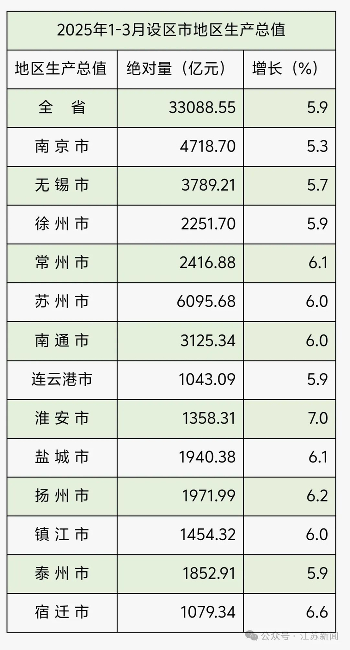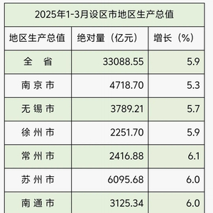 日前,江苏省统计局官网发布2025年1-3月江苏13个设区市地区生产总值。