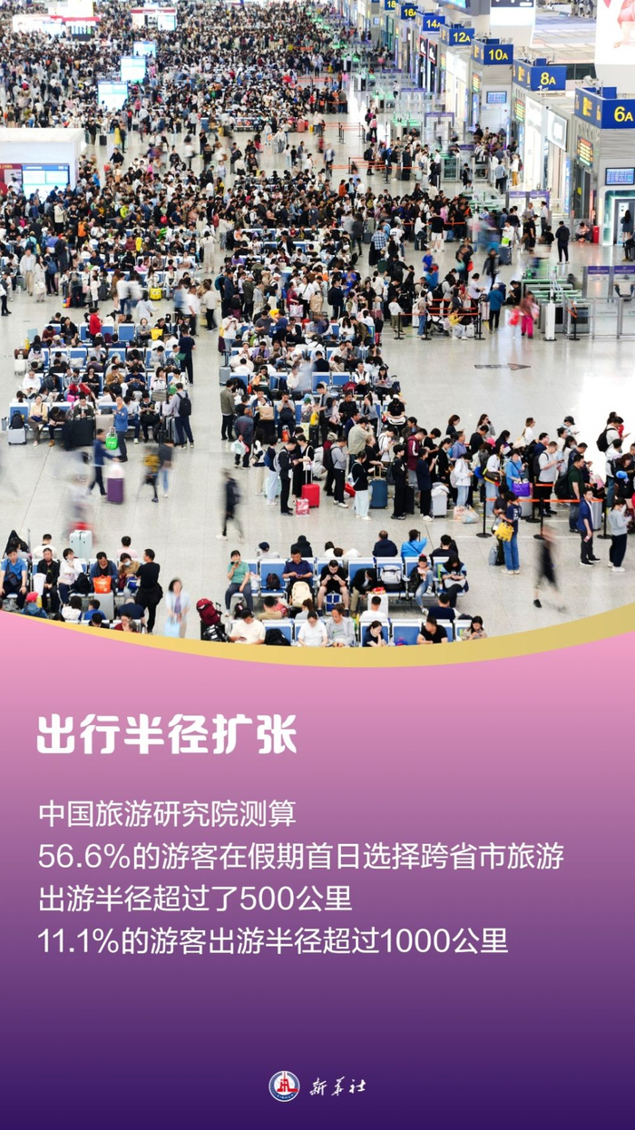 “五一”假期,人们出行半径较清明节假期明显扩张,据中国旅游研究院测算,56.6%的游客在假期首日选择了跨省市旅游,出游半径超过了500公里,11.1%的游客出游半径超过1000公里。去哪儿平台上,用户预订的酒店遍布1230个县城,全国县城酒店预订量同比增长30%。携程数据显示,乡村游预订量同比增长近两成,乡村采摘徒步、体验民俗文化、亲子康养等特色活动持续受消费者青睐。