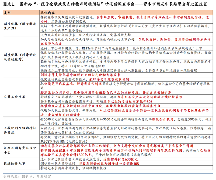 2) 支持资本市场:推动保险等增量资金入市+提升股市投资风险偏好,汇金公司等继续发挥市场“托底”作用。