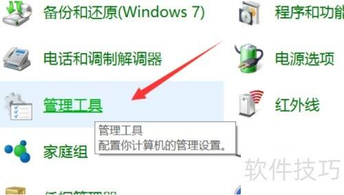 3、 打开控制面板,找到并点击管理工具,进入相应界面。