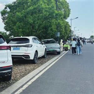 “五一”假期,南浔区石淙镇花海景区,部分车辆随意停放在草坪上和路边,影响景区形象。