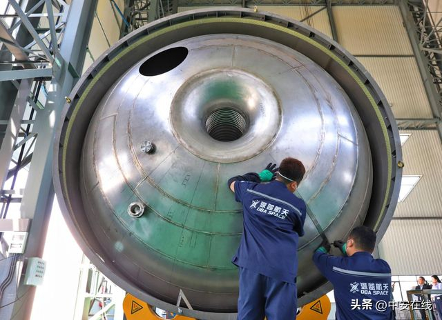 深蓝航天厂房内,技术人员正在对燃料贮箱进行焊接点标注。