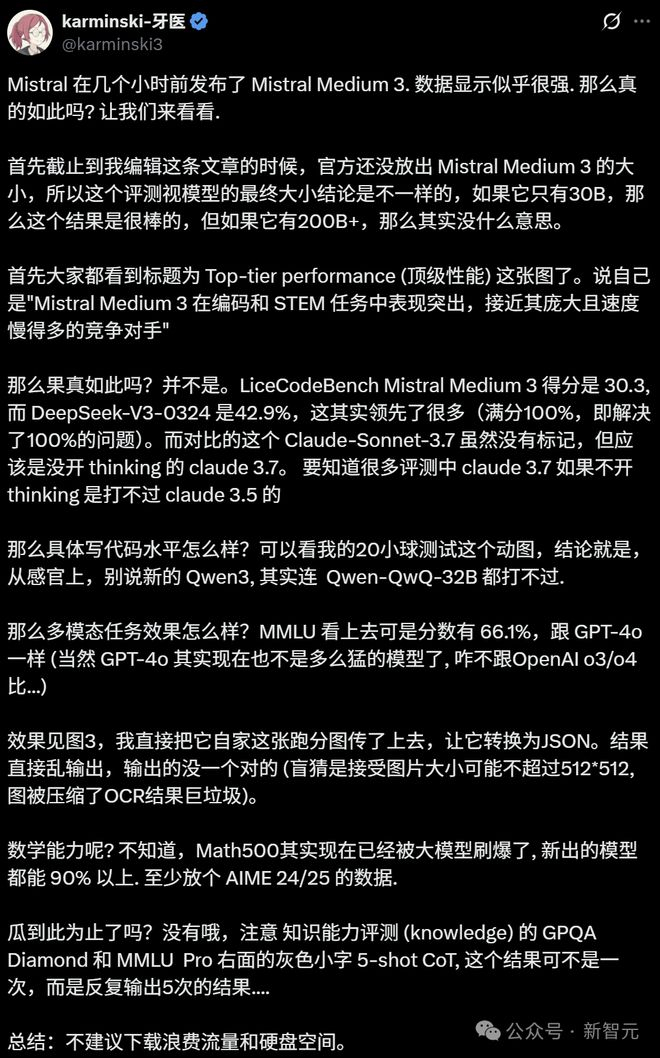 【新智元导读】法国初创Mistral,刚刚推出定价碾压DeepSeek V3的模型,而模型性能,却超过Claude Sonnet 3.7的90%。不过在网友们的实测中,它却翻车了?有人建议:不必下载浪费流量和硬盘空间。