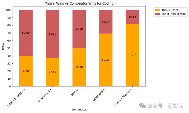 可以看到,Mistral Medium 3在编码领域表现出色,并且在各个方面都比其他竞争对手提供了更好的性能。