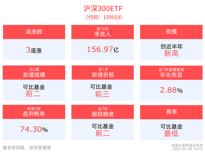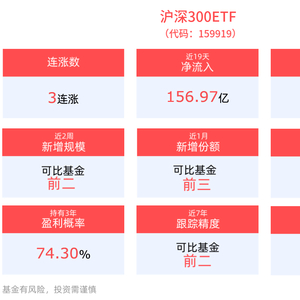 中国资产仍具吸引力,沪深300ETF(159919)冲击3连涨,最新规模创近半年新高