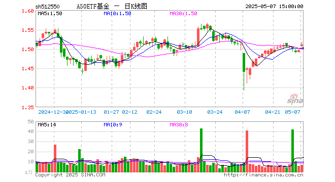 5月7日A50ETF基金(512550)份额减少100.00万份,最新份额2.36亿份,最新规模3.57亿元
