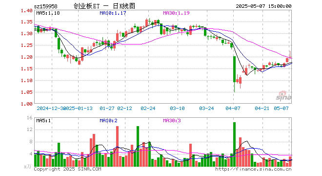 5月7日,创业板ETF工银(159958)涨0.42%,成交额379.13万元。当日份额减少70.00万份,最新份额为3.56亿份,近20个交易日份额增加1610.00万份。最新资产净值计算值为4.27亿元。