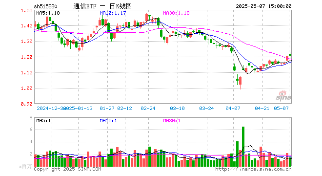 5月7日通信ETF(515880)份额增加1100.00万份,最新份额25.56亿份,最新规模30.77亿元