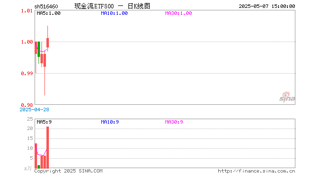 5月7日,现金流ETF800(516460)涨0.50%,成交额2110.84万元。当日份额减少1200.00万份,最新份额为1.71亿份。最新资产净值计算值为1.71亿元。