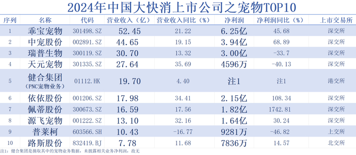 【独家】“2024年中国大快消上市公司之宠物TOP10”公布,乖宝宠物、中宠股份摘得冠亚,佩蒂股份利润增长超1700%