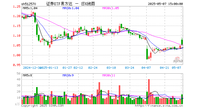 5月7日,证券ETF易方达(512570)涨0.57%,成交额1624.57万元。当日份额减少100.00万份,最新份额为7.28亿份,近20个交易日份额减少4600.00万份。最新资产净值计算值为7.67亿元。