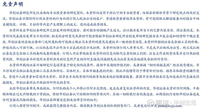 根据《证券期货投资者适当性管理办法》及配套指引,本资料仅面向华创证券客户中的金融机构专业投资者,请勿对本资料进行任何形式的转发。若您不是华创证券客户中的金融机构专业投资者,请勿订阅、接收或使用本资料中的信息。
