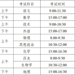 各科目考试时间如下: