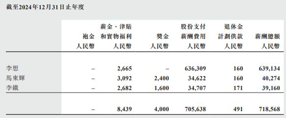 李想2024年薪酬结构(单位:人民币千元)。图据理想汽车2024年年报