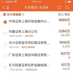 东方财富软件4月30日的龙虎榜单显示,在节前最后一个交易日,中信证券上海环球金融中心营业部以9999万元的价格在跌停板买入天茂集团股票,彼时市场就猜测是刘益谦“出手”回购自家股票。