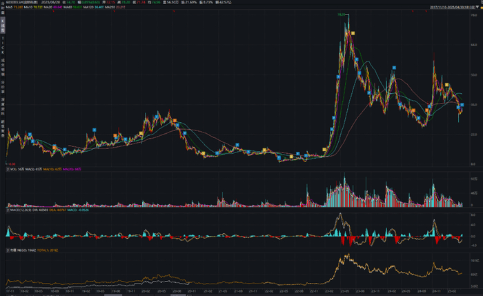 不过,物极必反,自2023年6月20日之后,剑桥科技的股价又有所回落,但仍然高于2023年以前的水平。