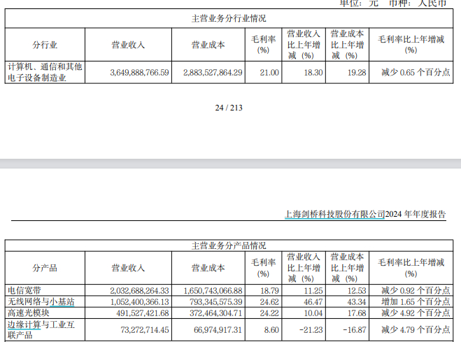 分业务看,2024年,电信宽带终端仍然是剑桥科技的支柱业务,全年收入20.33亿元,虽较2023年的18.27亿元增长11.25%,但相比2022年的20.59亿元仍略有下降。