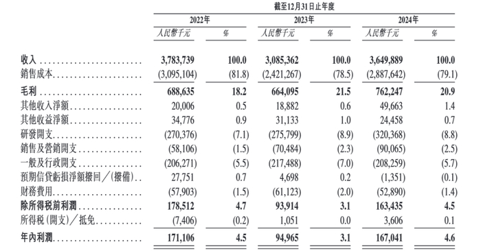 同时,剑桥科技近3年的净利润率也出现波动,2024年净利润率为4.57%,较2023年的3.08%有所增长,但同期销售毛利率同比下降0.6个百分点至20.99%。