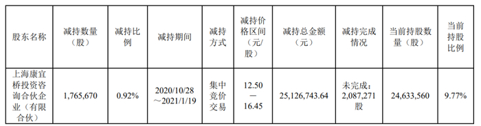 事实上,从2020年1月,康宜桥就开始了减持计划。据瑞财经《预审IPO》统计,截至其最后完成清仓,共计套现了约8.02亿元。